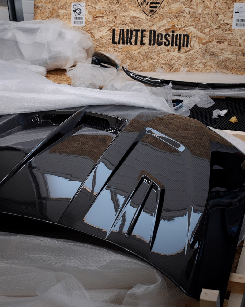 La Cartune, pachetele Larte sunt montate folosind proceduri tehnice precise, cu ajustări calibrate pentru o integrare perfectă pe caroserie. Componentele sunt fabricate din carbon, fibră de sticlă HRD sau materiale compozite avansate, optimizate pentru rigiditate și greutate redusă. Fiecare element aerodinamic este proiectat să îmbunătățească fluxul de aer și stabilitatea, oferind în același timp o personalizare premium, cu linii exacte și un fitment impecabil.